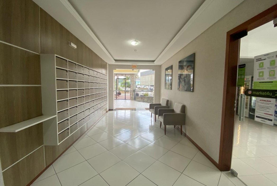 O edifício dispõe de hall de entrada decorado, portão eletrônico, dois elevadores, salão de festas e playground, oferecendo segurança, comodidade e acessibilidade aos moradores.