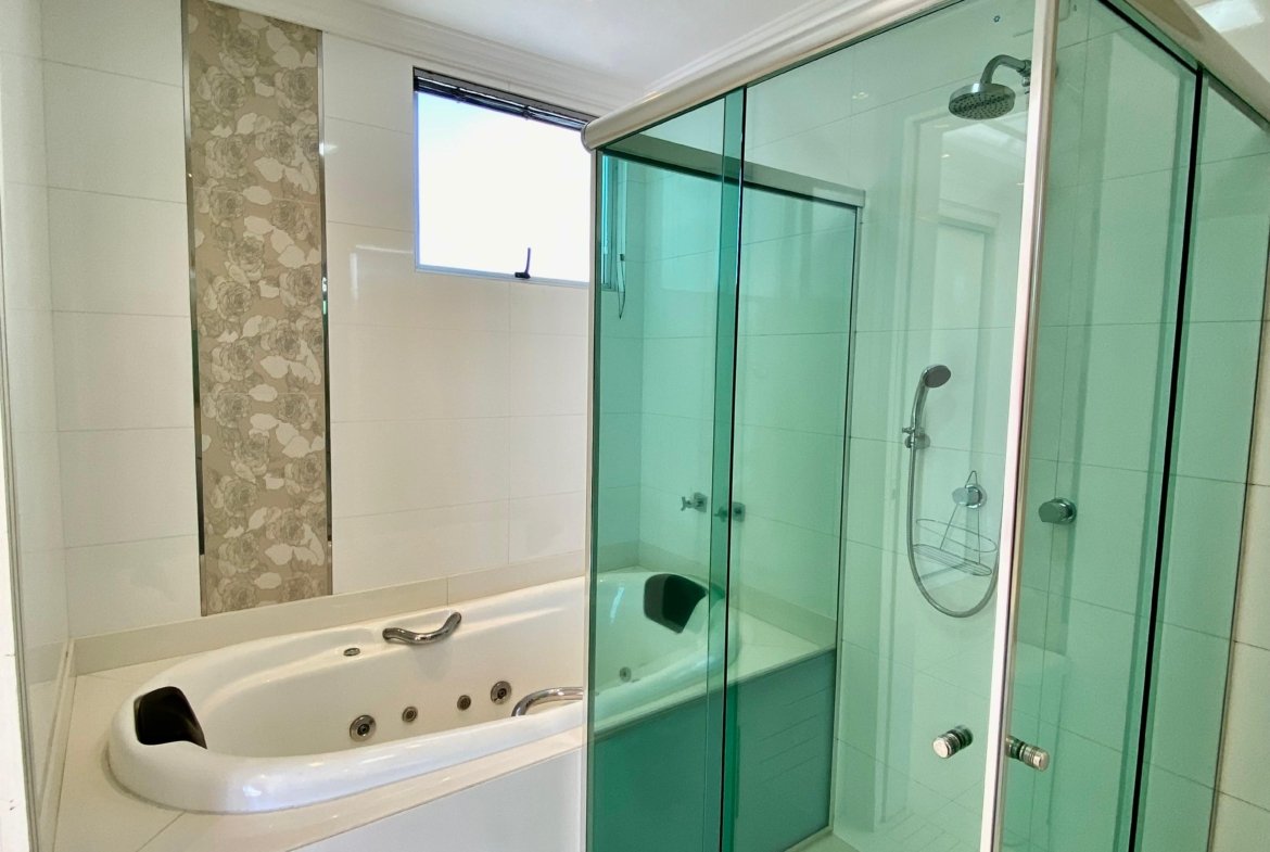 O imóvel conta com banheiro equipado com jacuzzi, um diferencial que oferece mais conforto e momentos de relaxamento no próprio lar.