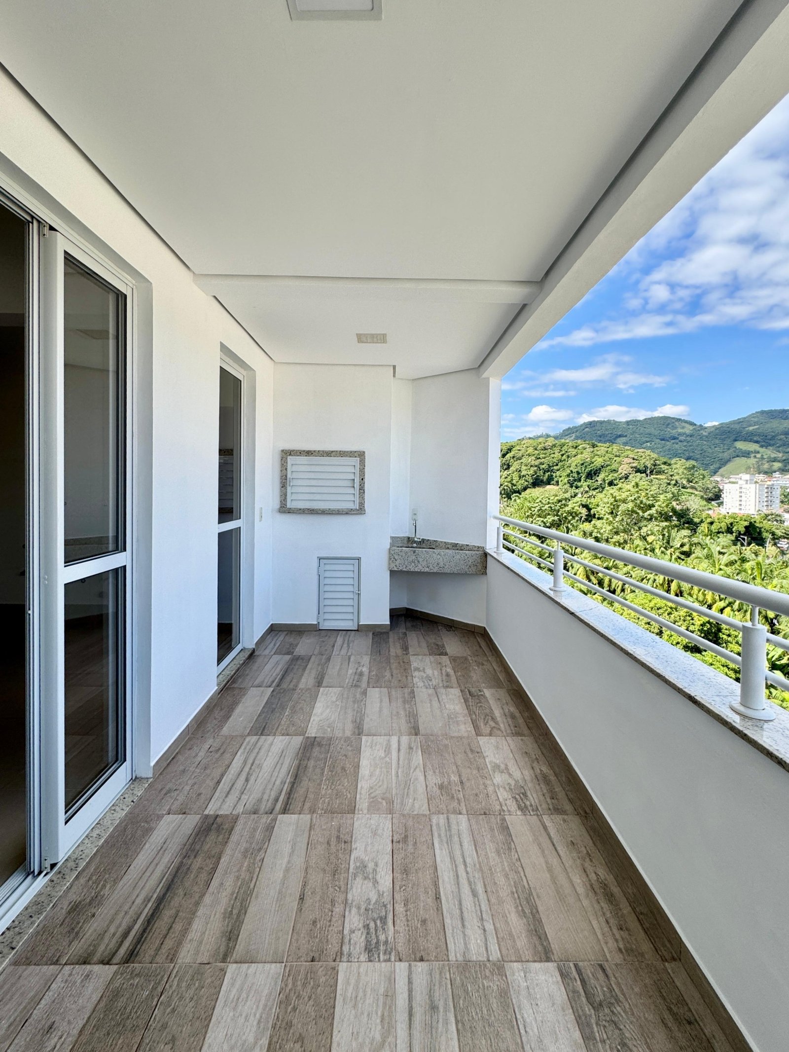 A sacada é um diferencial que oferece um espaço agradável para momentos de descanso, além de contribuir para melhor iluminação e ventilação natural dos ambientes.