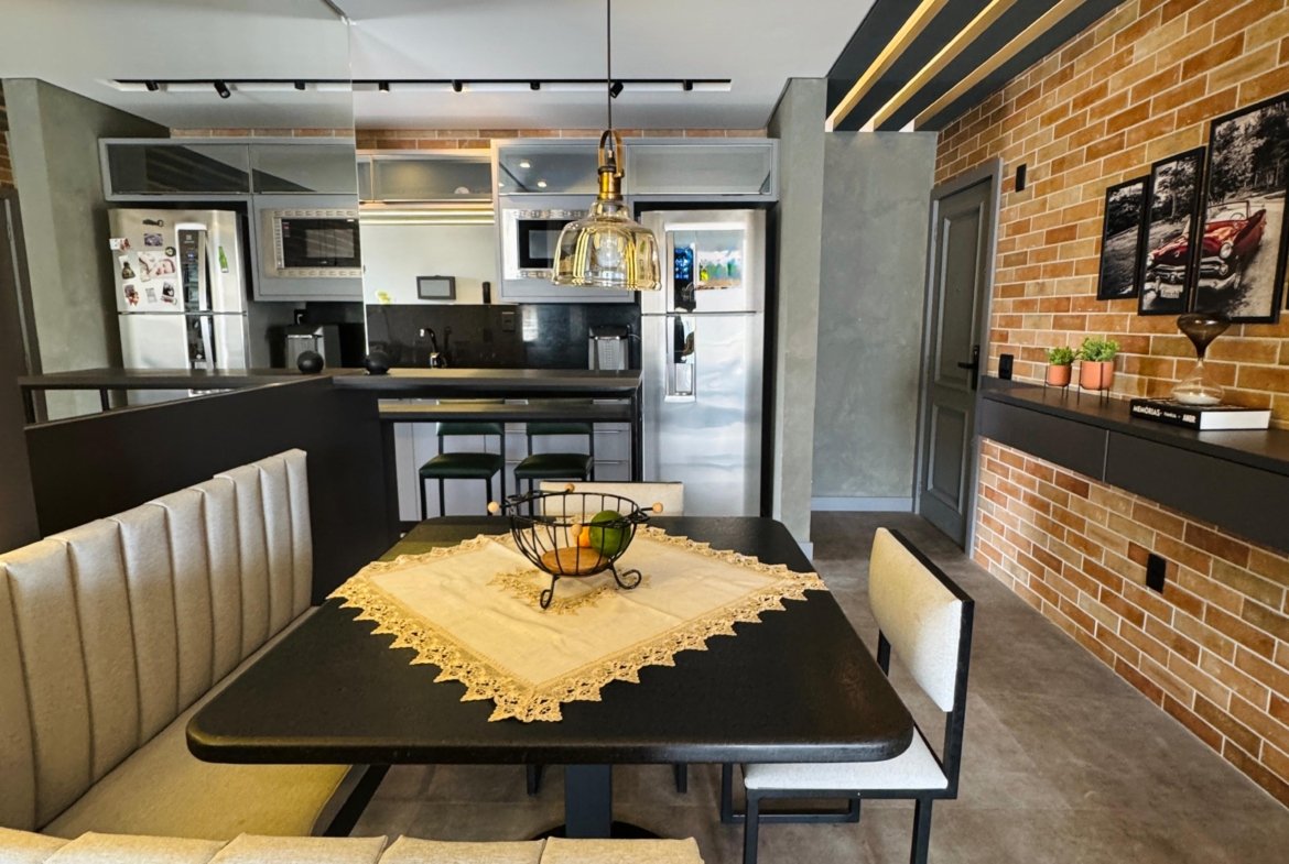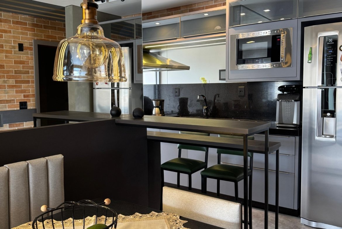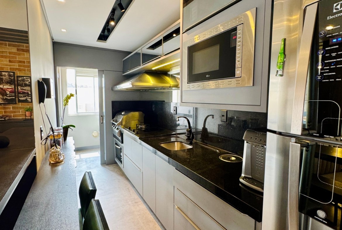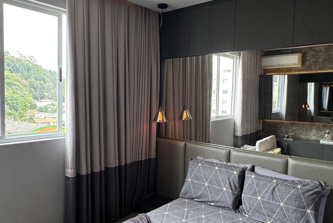 Lindo apartamento, todo mobiliado, contendo dois dormitórios, banheiro social, sala para dois ambientes com sacada integrada, cozinha, área de serviço, fechadura eletrônica, cortina automatizada, churrasqueira a gás, sacada com fechamento em reike, piso porcelanato, teto com gesso, paredes com massa corrida, garagem. Localizado no sexto andar (ultimo andar), com posição de frente e uma vista incrível.