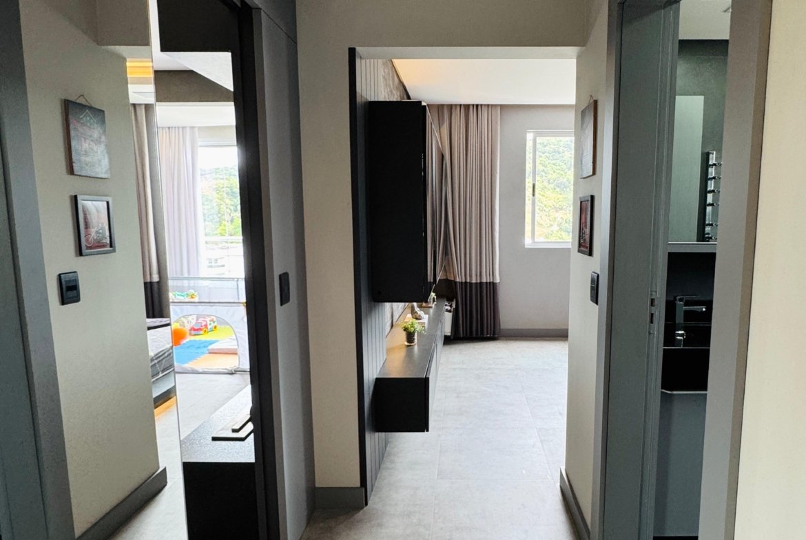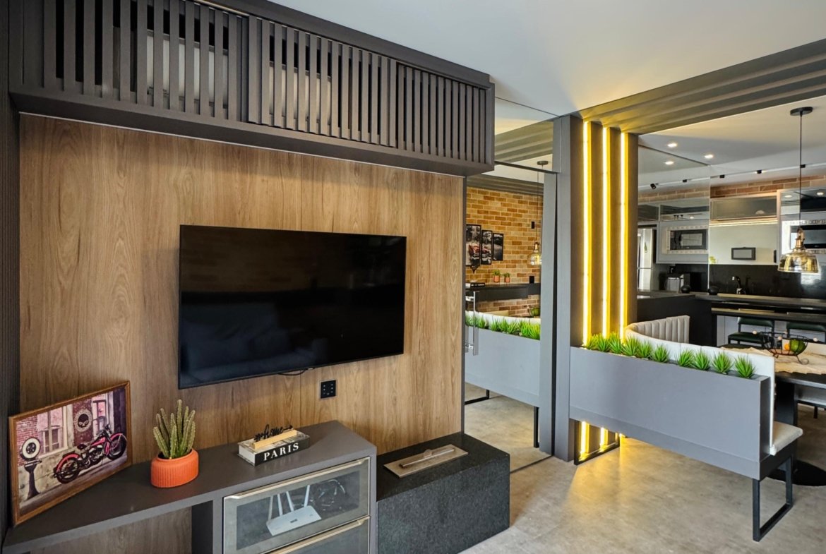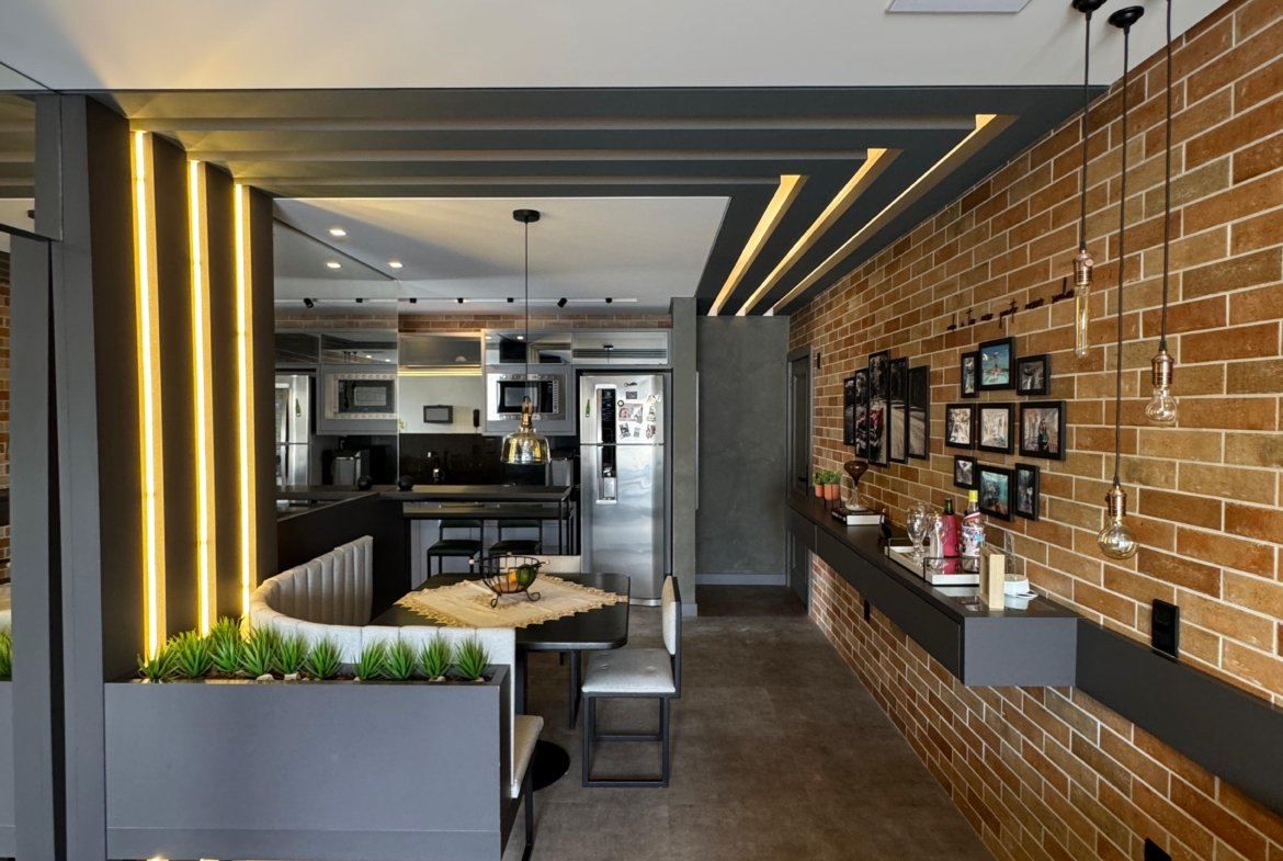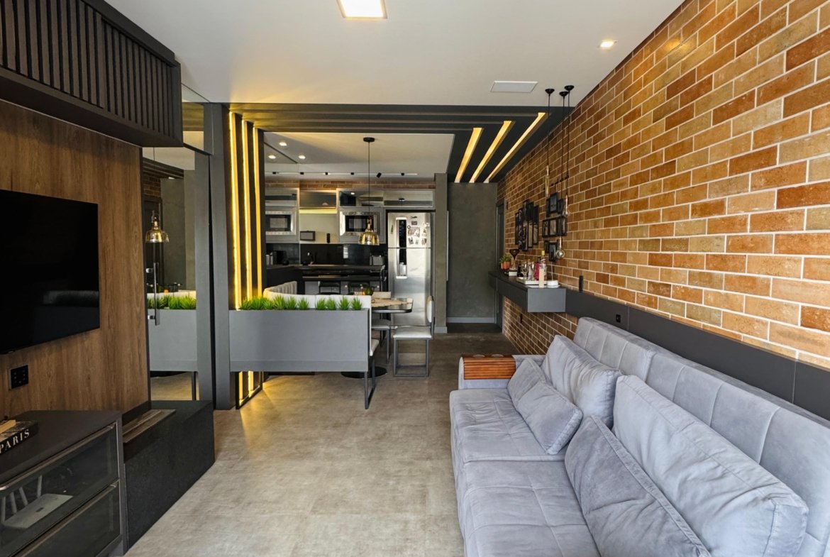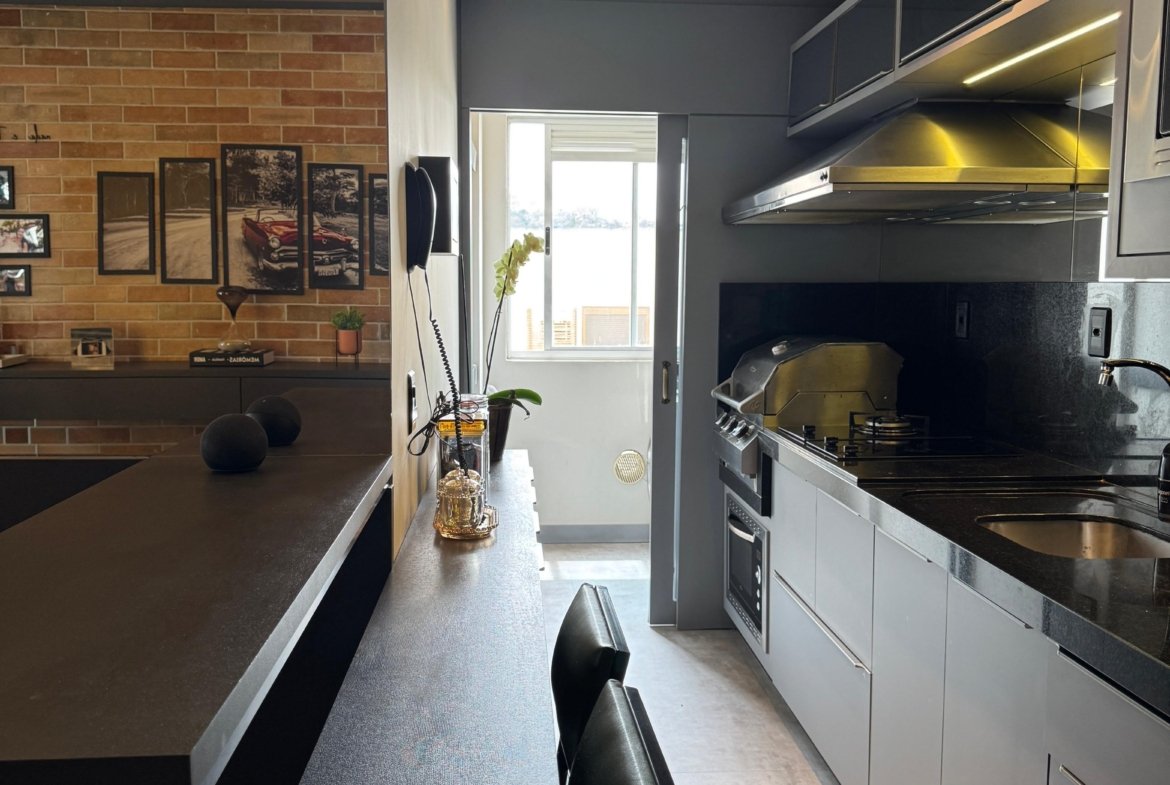 Lindo apartamento, todo mobiliado, contendo dois dormitórios, banheiro social, sala para dois ambientes com sacada integrada, cozinha, área de serviço, fechadura eletrônica, cortina automatizada, churrasqueira a gás, sacada com fechamento em reike, piso porcelanato, teto com gesso, paredes com massa corrida, garagem. Localizado no sexto andar (ultimo andar), com posição de frente e uma vista incrível.
