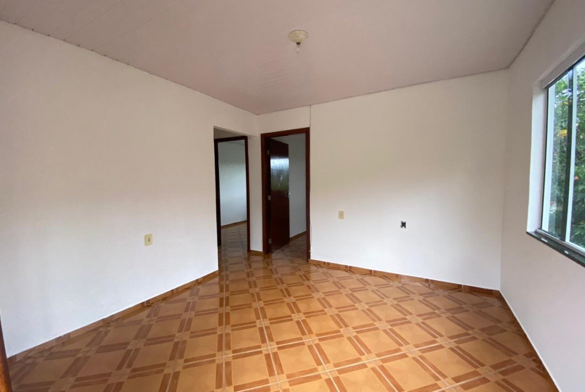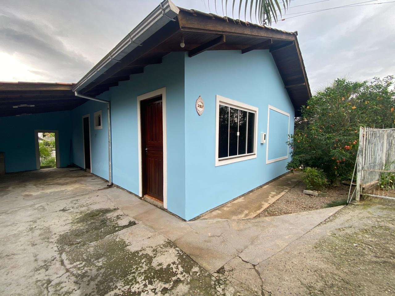 Linda Casa com jardim contendo dois dormitórios, sala, cozinha, área de serviço, banheiro e garagem.