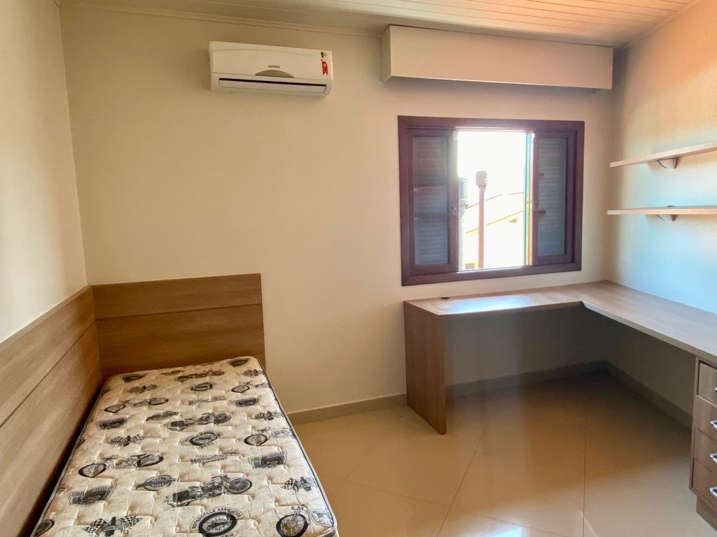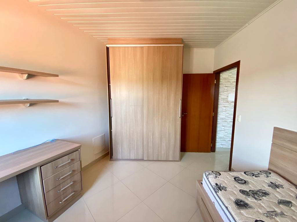 A casa possui móveis planejados, ar-condicionado nos cômodos, piscina com tampa de proteção, lindo jardim e garagem para dois carros com portão eletrônico, oferecendo conforto, segurança.