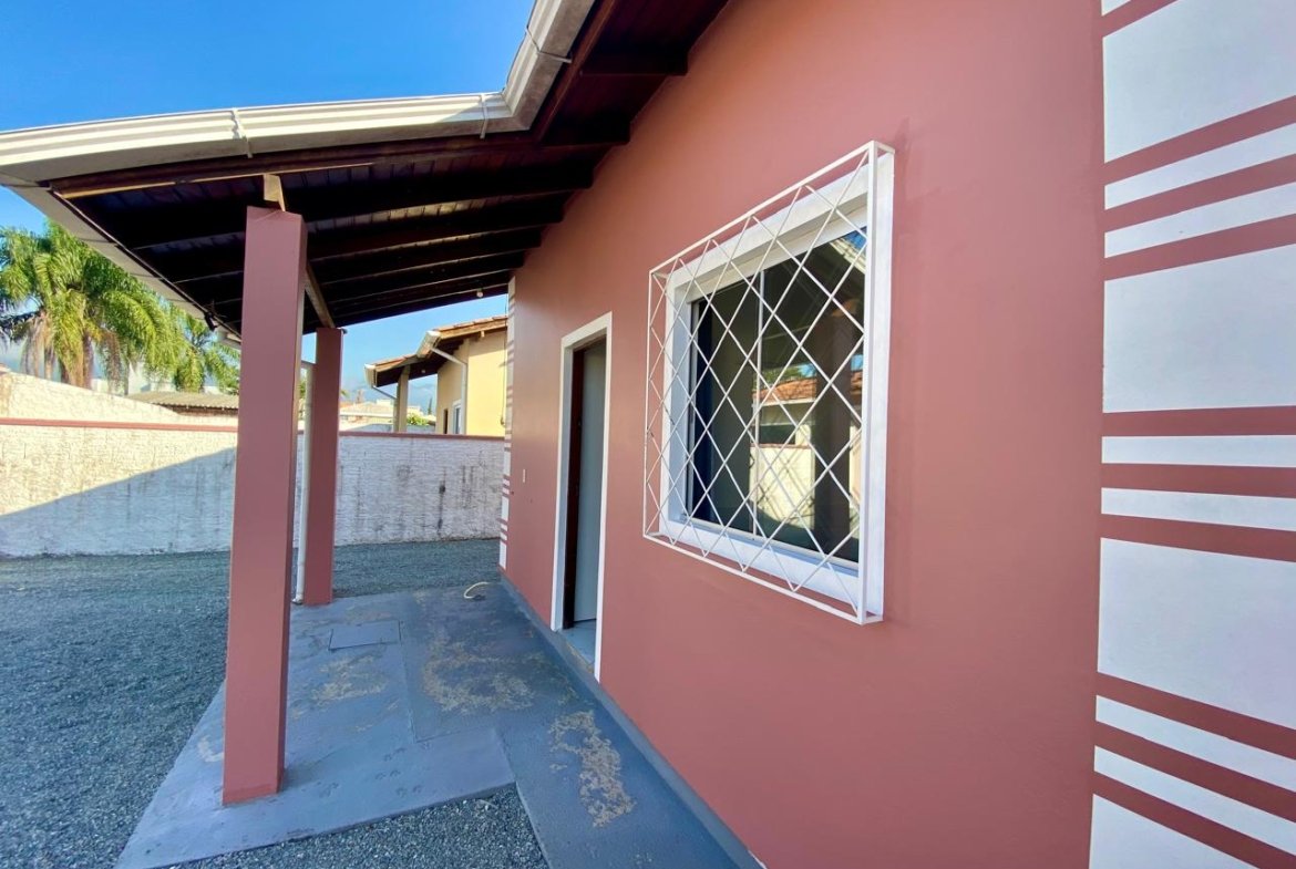 Linda casa contendo móveis planejados, dois dormitórios (dormitório casal com ar-condicionado), sala e cozinha conjugadas (refrigerador, fogão e sofá), banheiro social, varanda, jardim, terreno todo murado com ótima localização