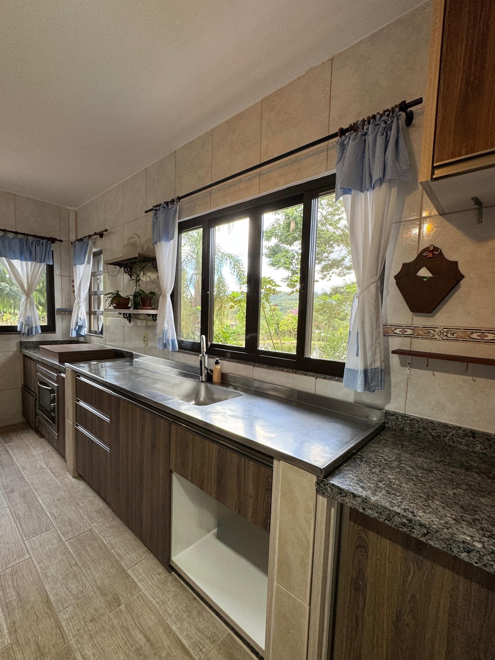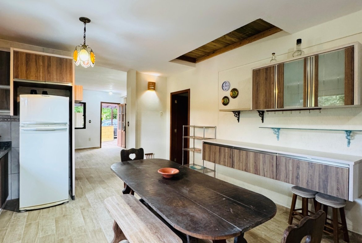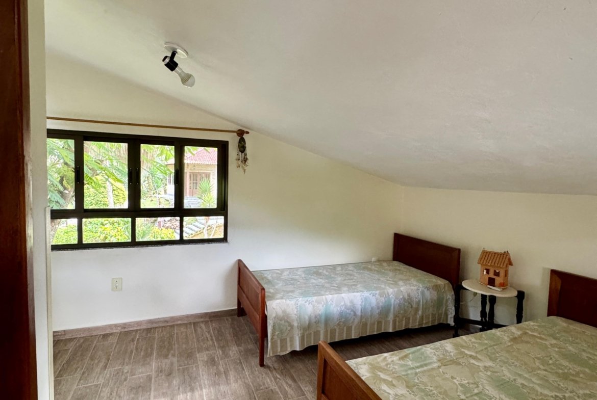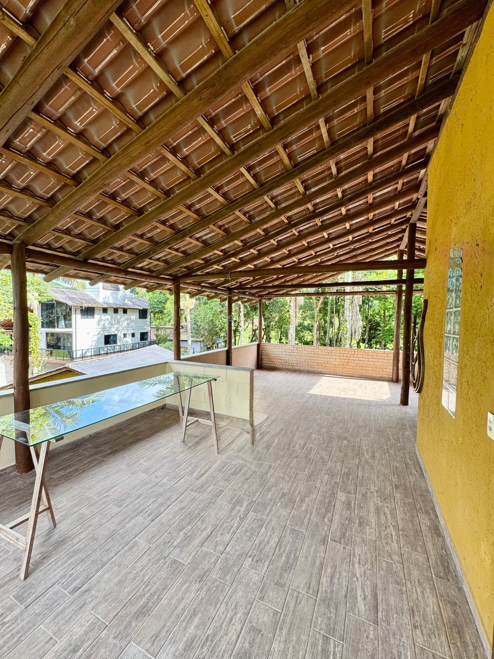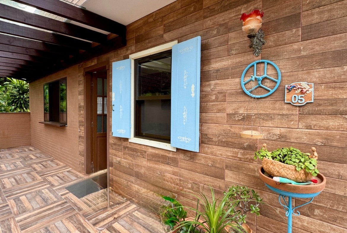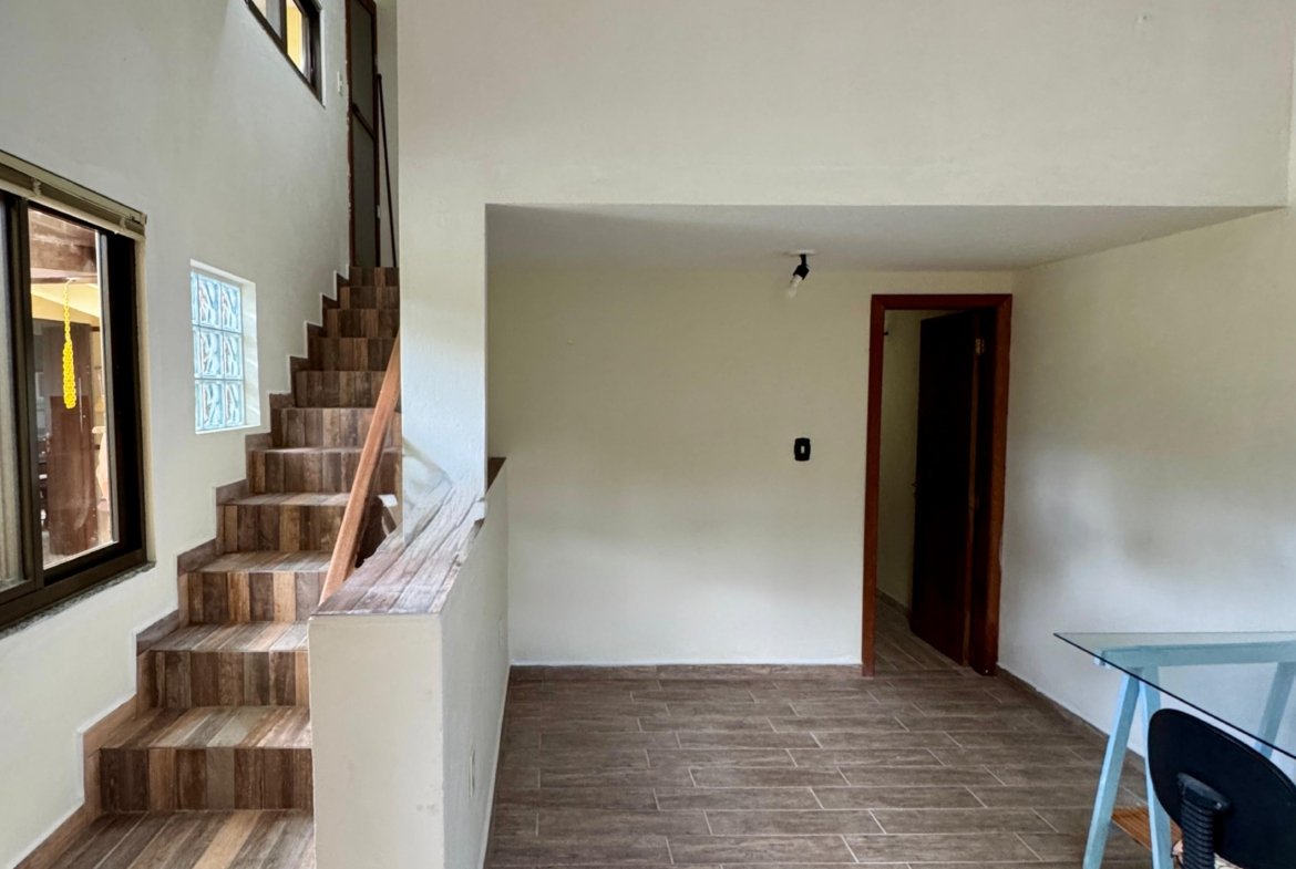 Casa com árvores frutíferas, mobiliada duas suítes (uma com closet) ar condicionado nas suítes e sala, cozinha completa com churrasqueira a carvão e fogão a lenha, lavanderia independente, escritório, lavabo, terraço com vista, varanda externa, garagem para dois carros.