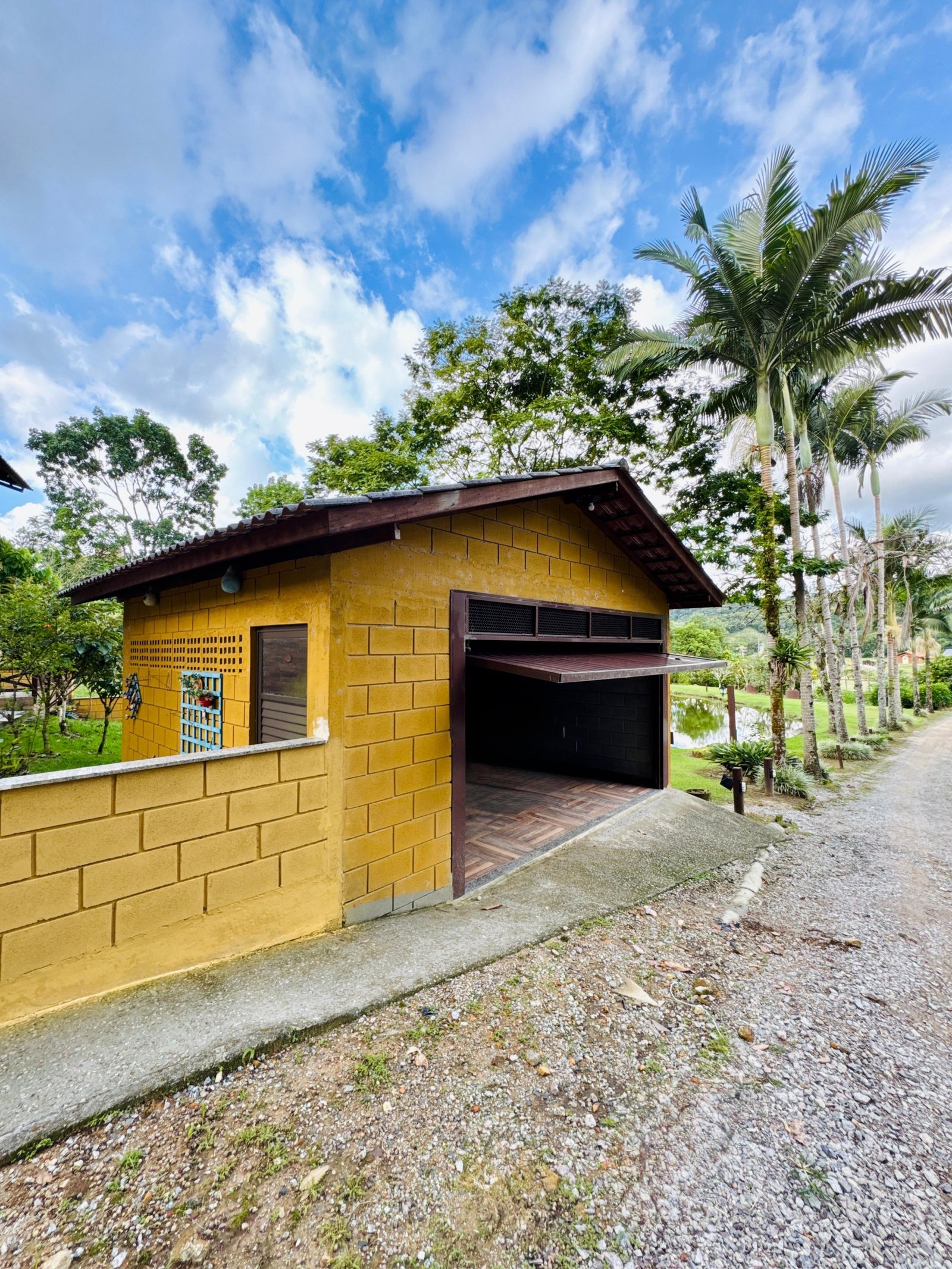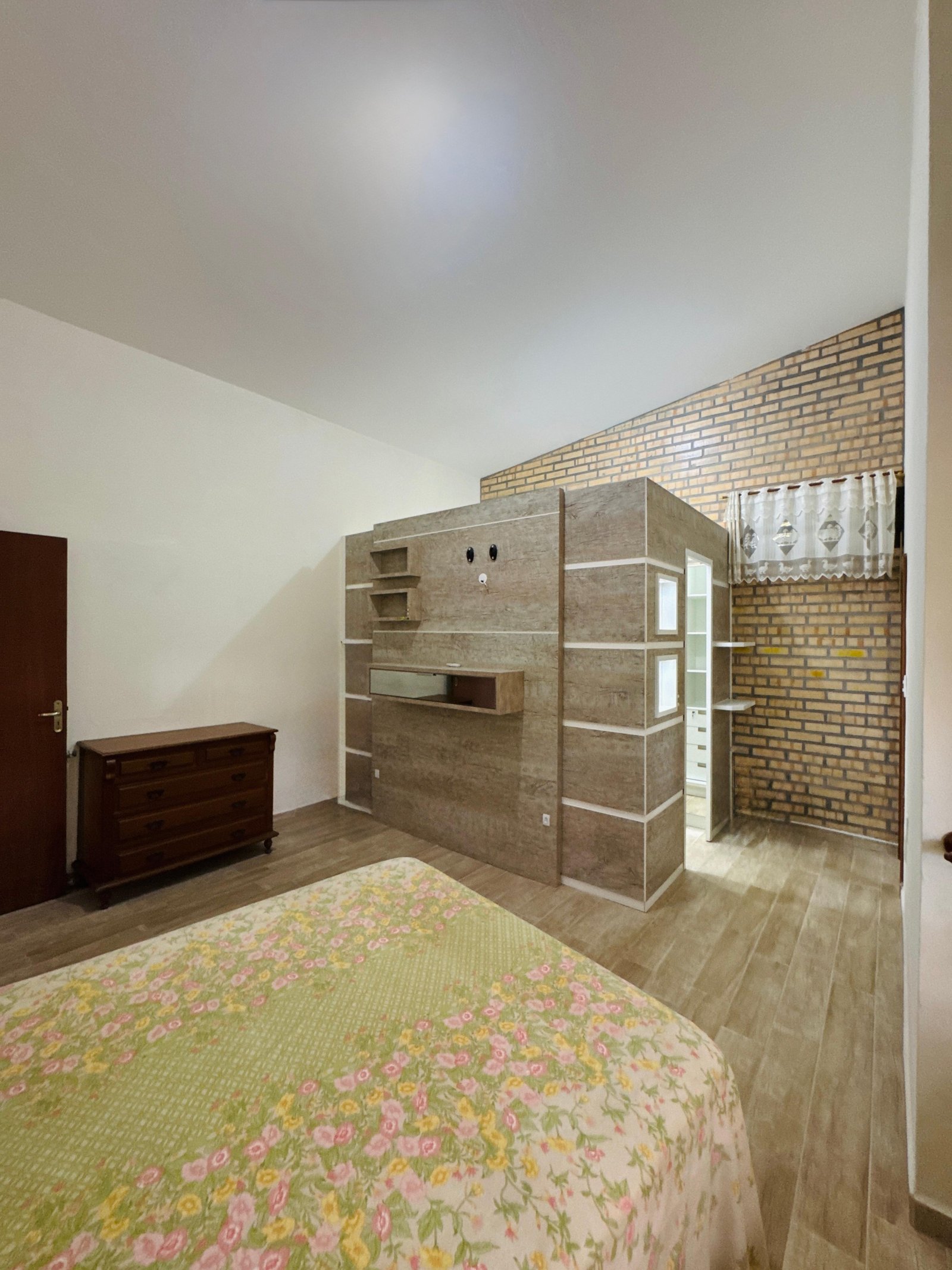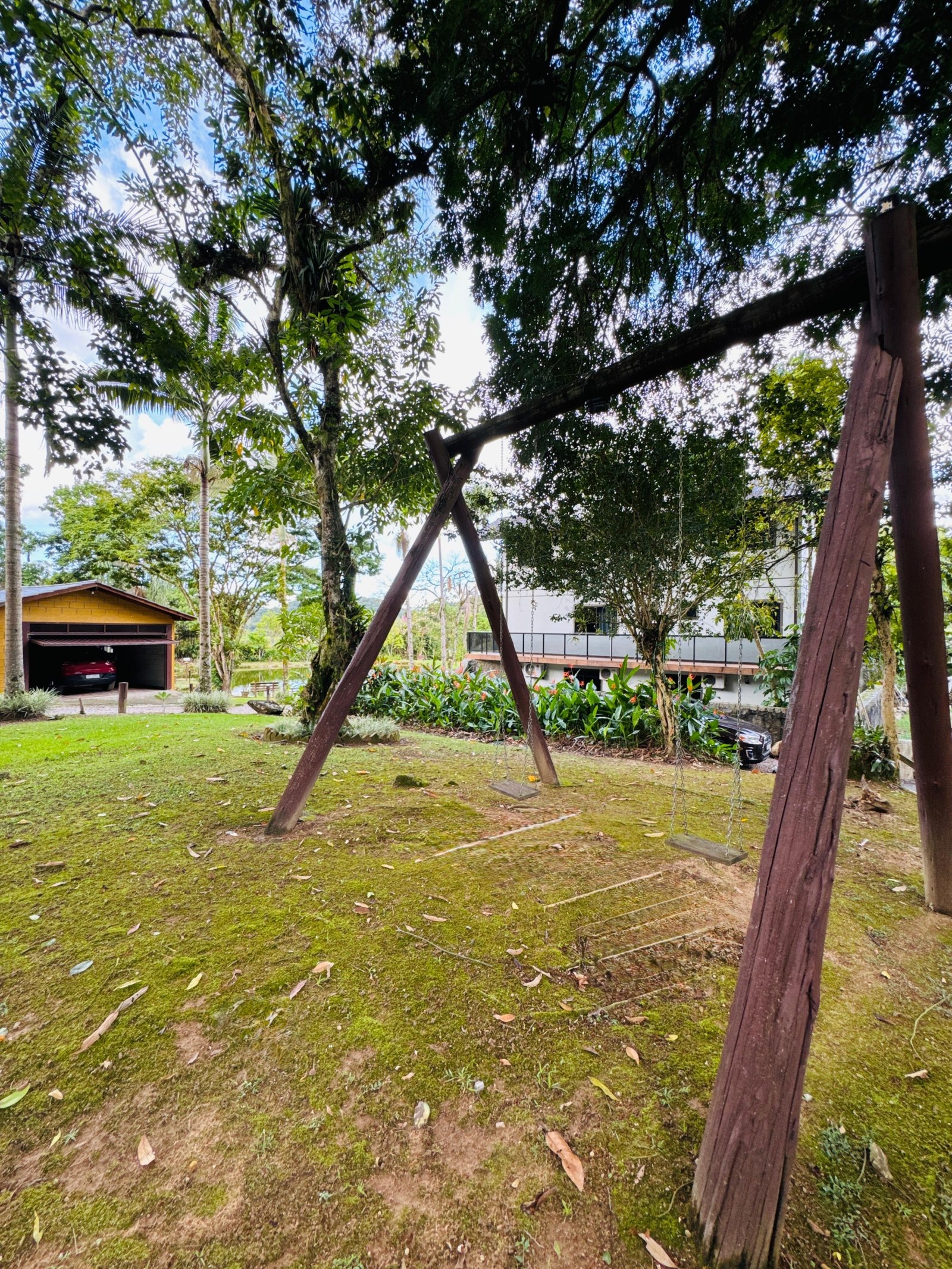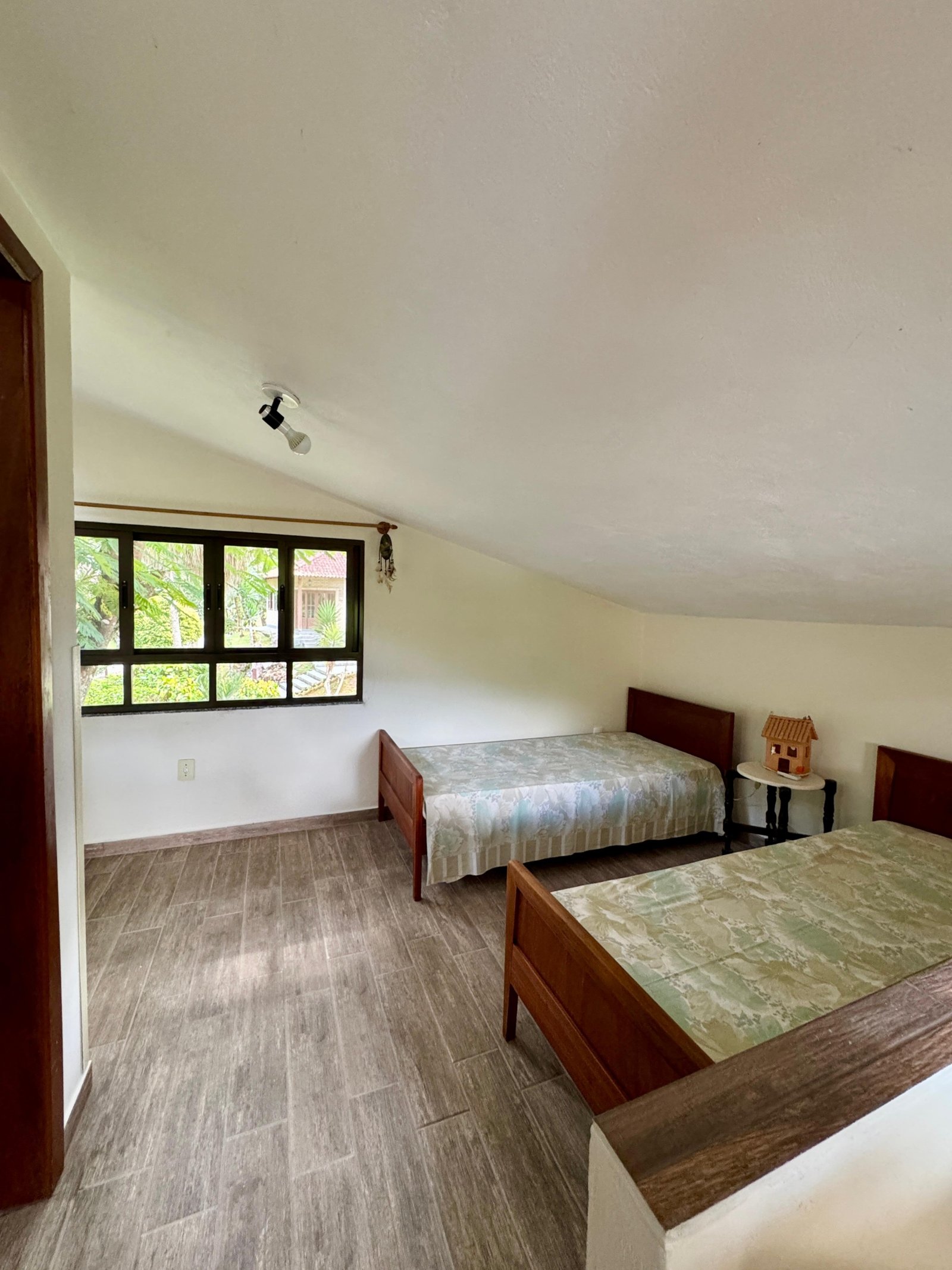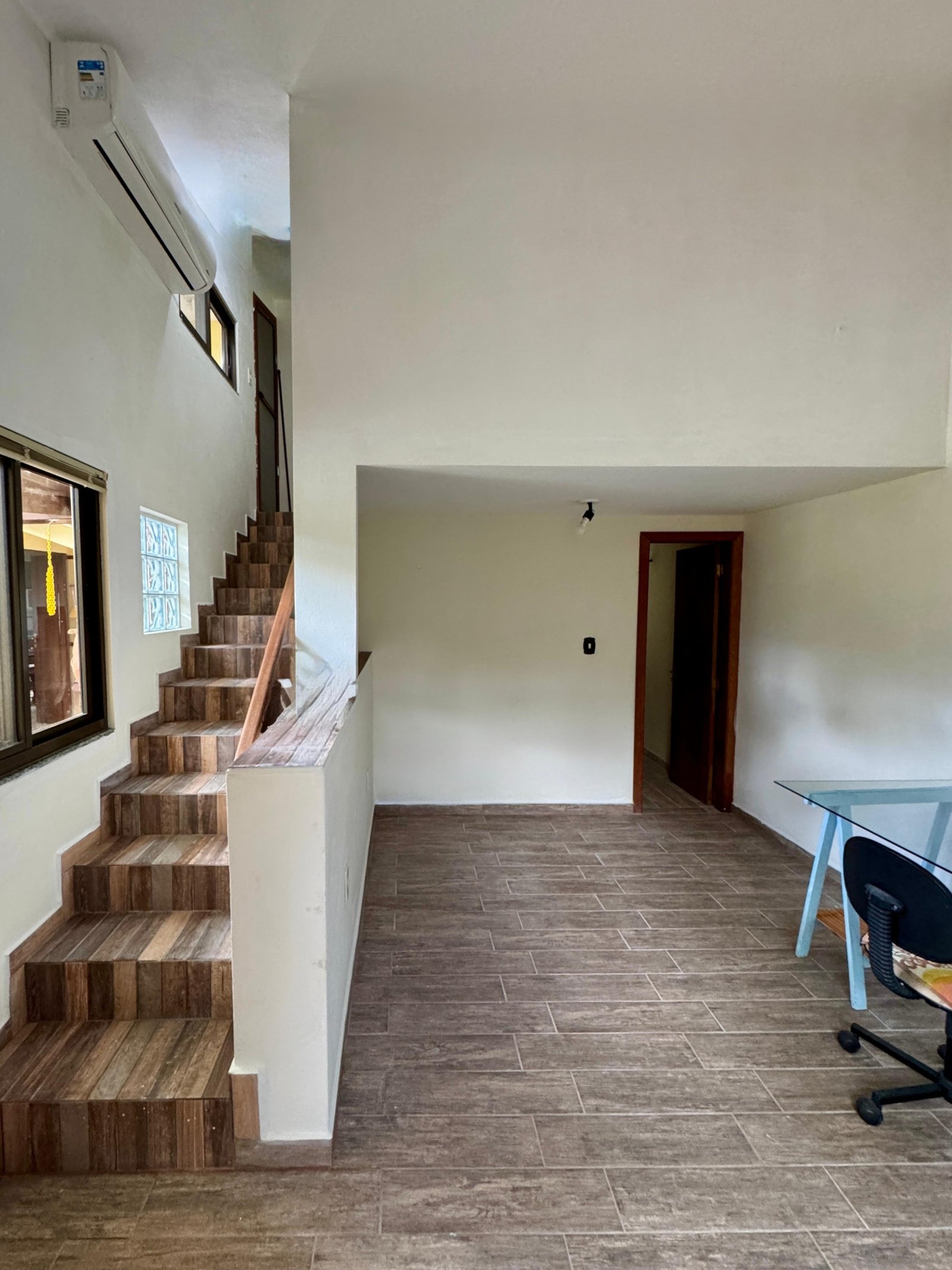 Casa com árvores frutíferas, mobiliada duas suítes (uma com closet) ar condicionado nas suítes e sala, cozinha completa com churrasqueira a carvão e fogão a lenha, lavanderia independente, escritório, lavabo, terraço com vista, varanda externa, garagem para dois carros.