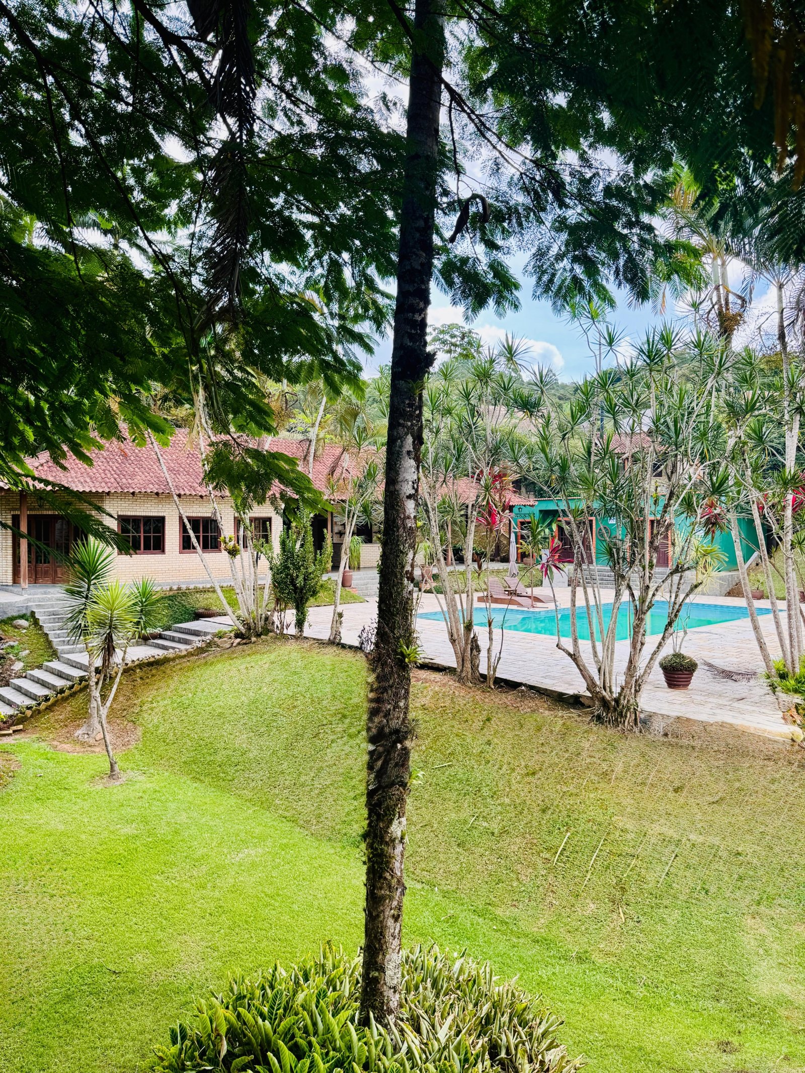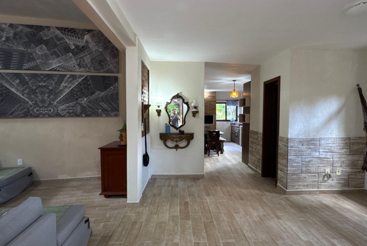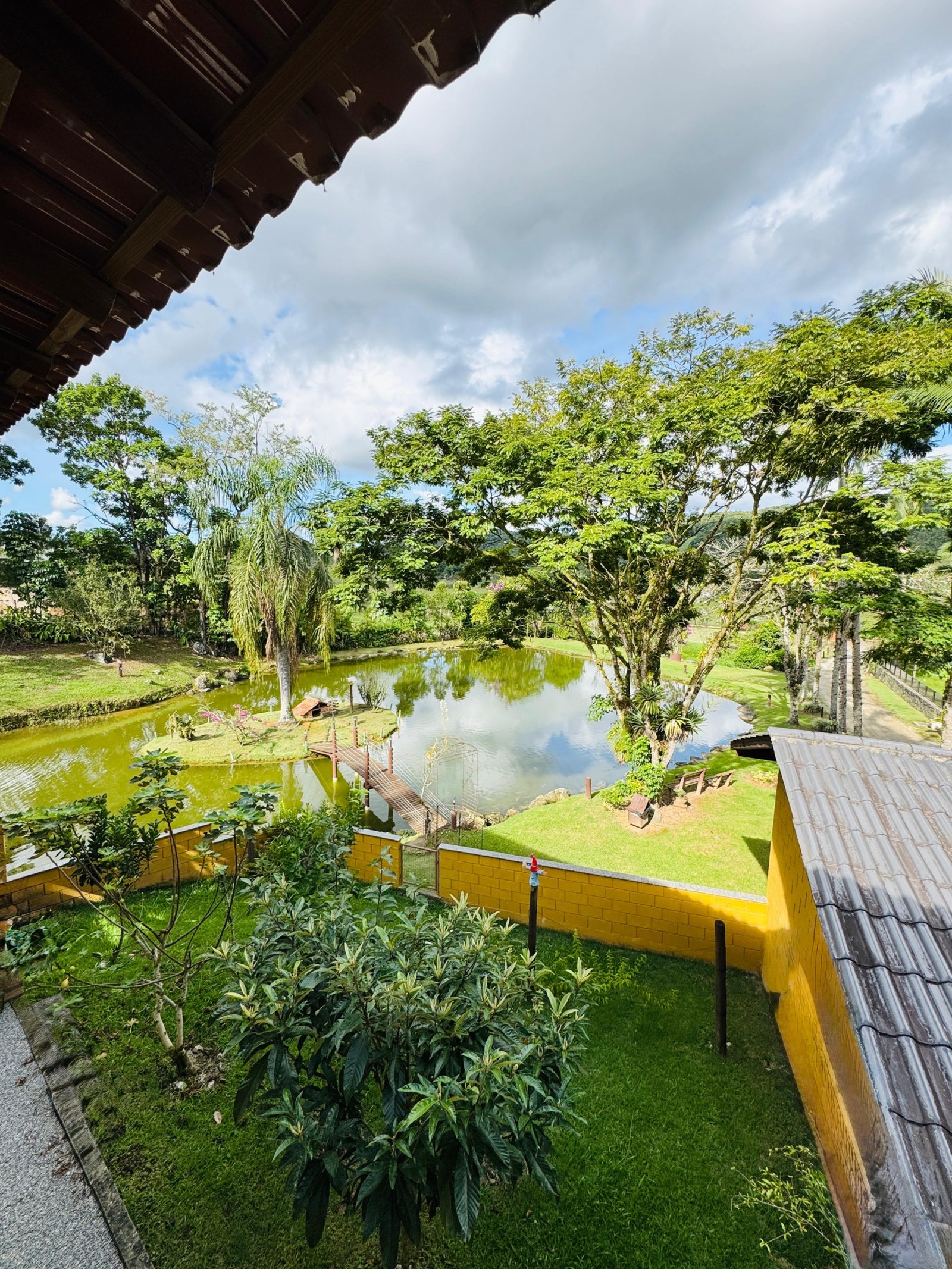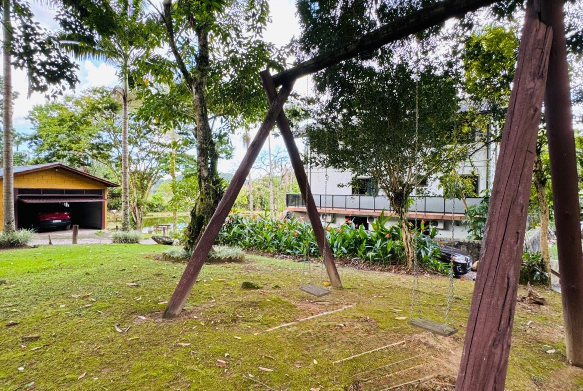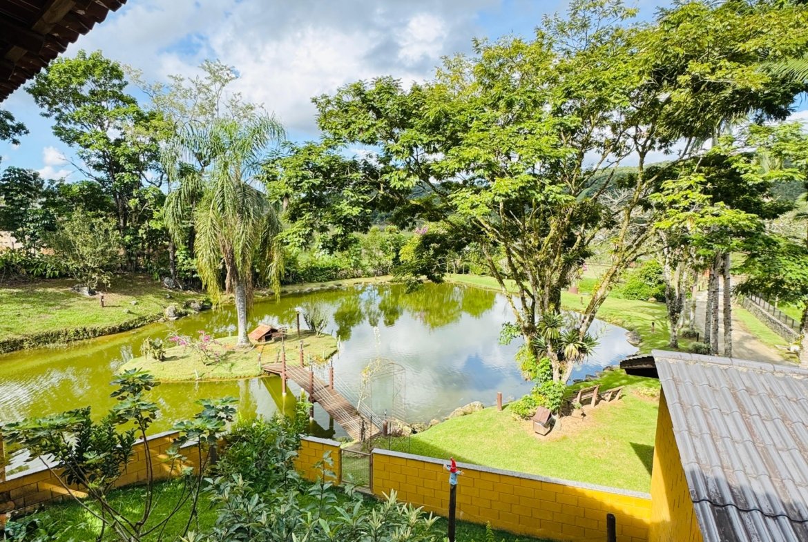 Casa com árvores frutíferas, mobiliada duas suítes (uma com closet) ar condicionado nas suítes e sala, cozinha completa com churrasqueira a carvão e fogão a lenha, lavanderia independente, escritório, lavabo, terraço com vista, varanda externa, garagem para dois carros.