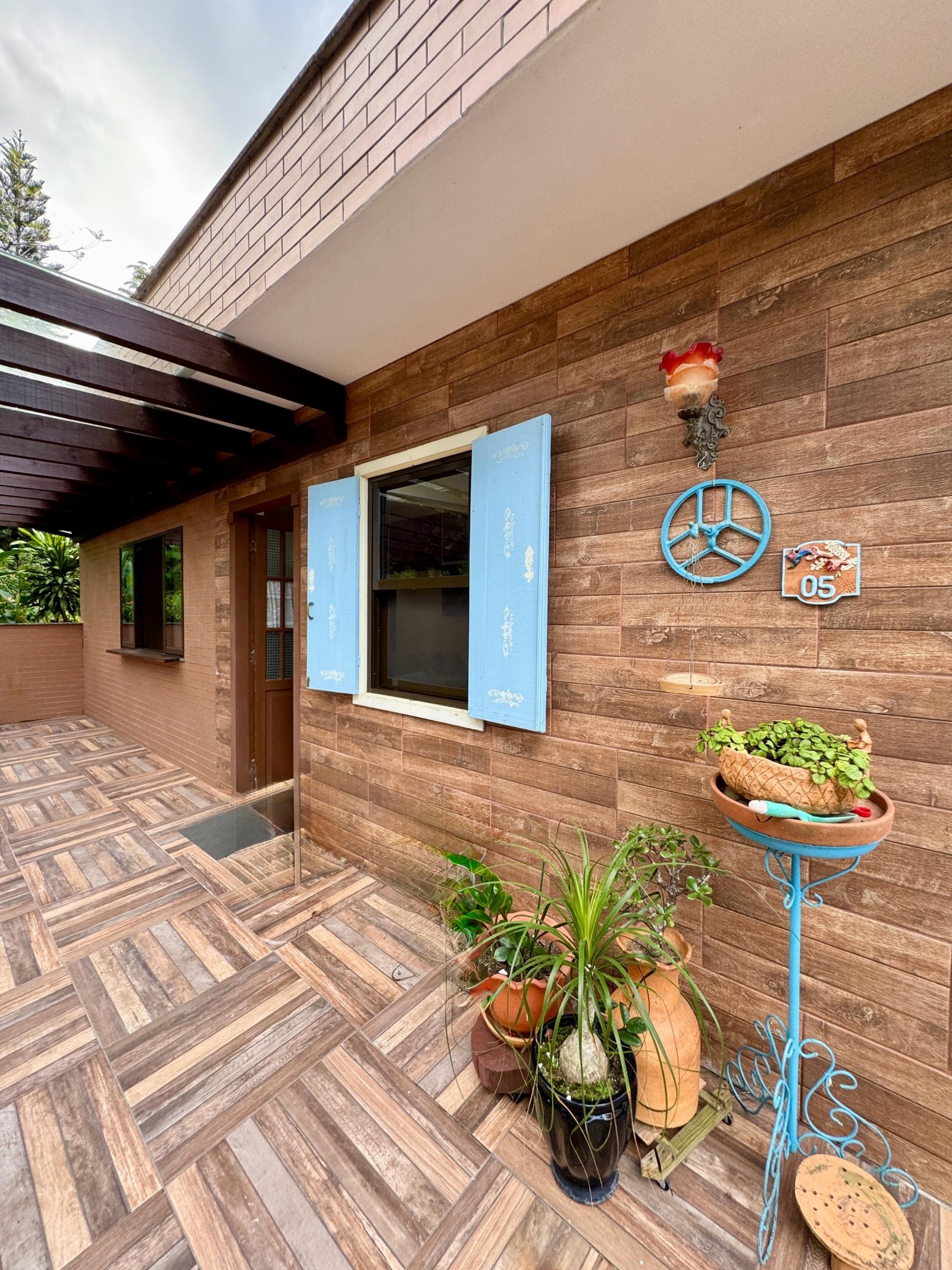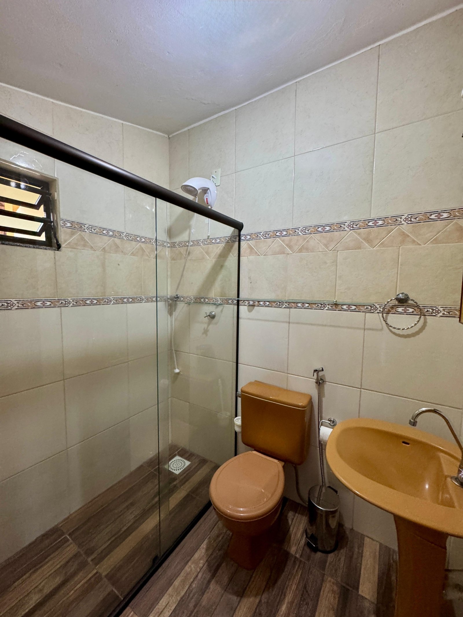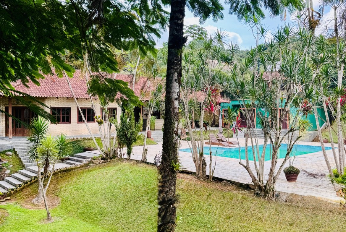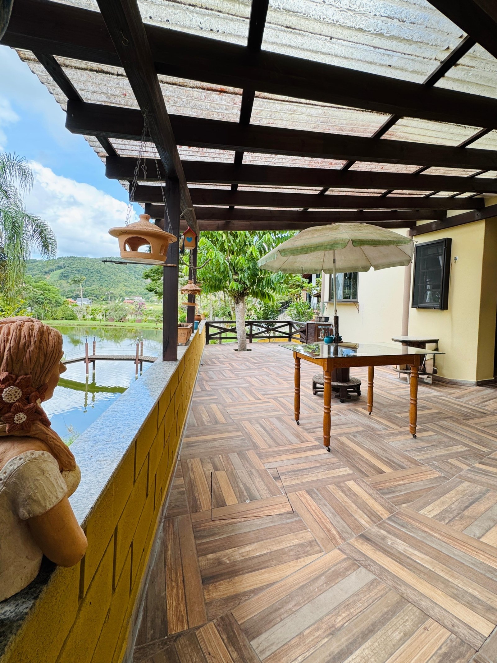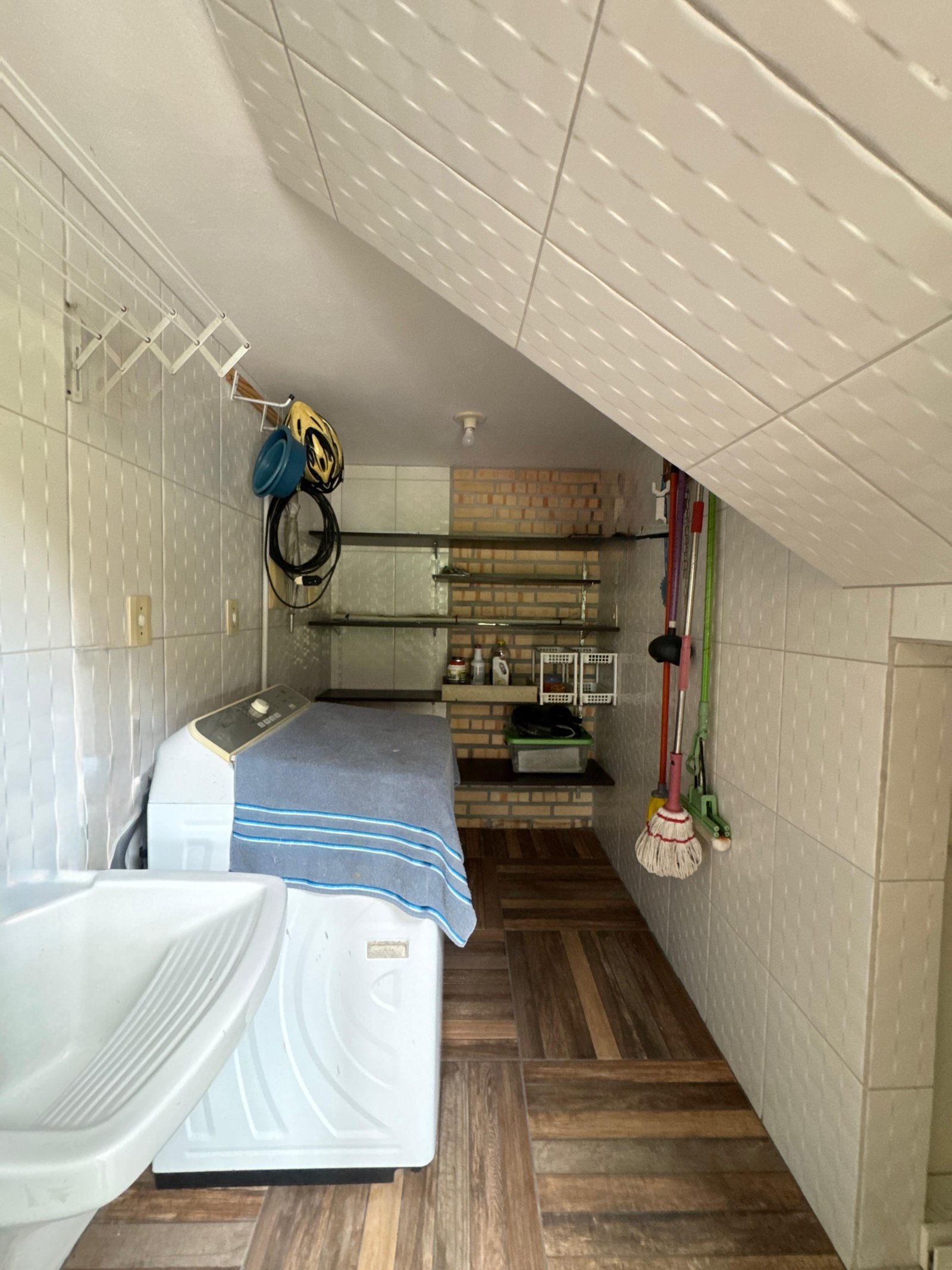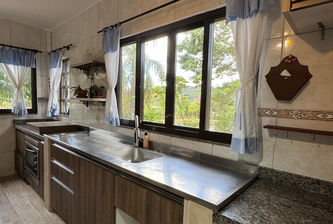 Casa com árvores frutíferas, mobiliada duas suítes (uma com closet) ar condicionado nas suítes e sala, cozinha completa com churrasqueira a carvão e fogão a lenha, lavanderia independente, escritório, lavabo, terraço com vista, varanda externa, garagem para dois carros.