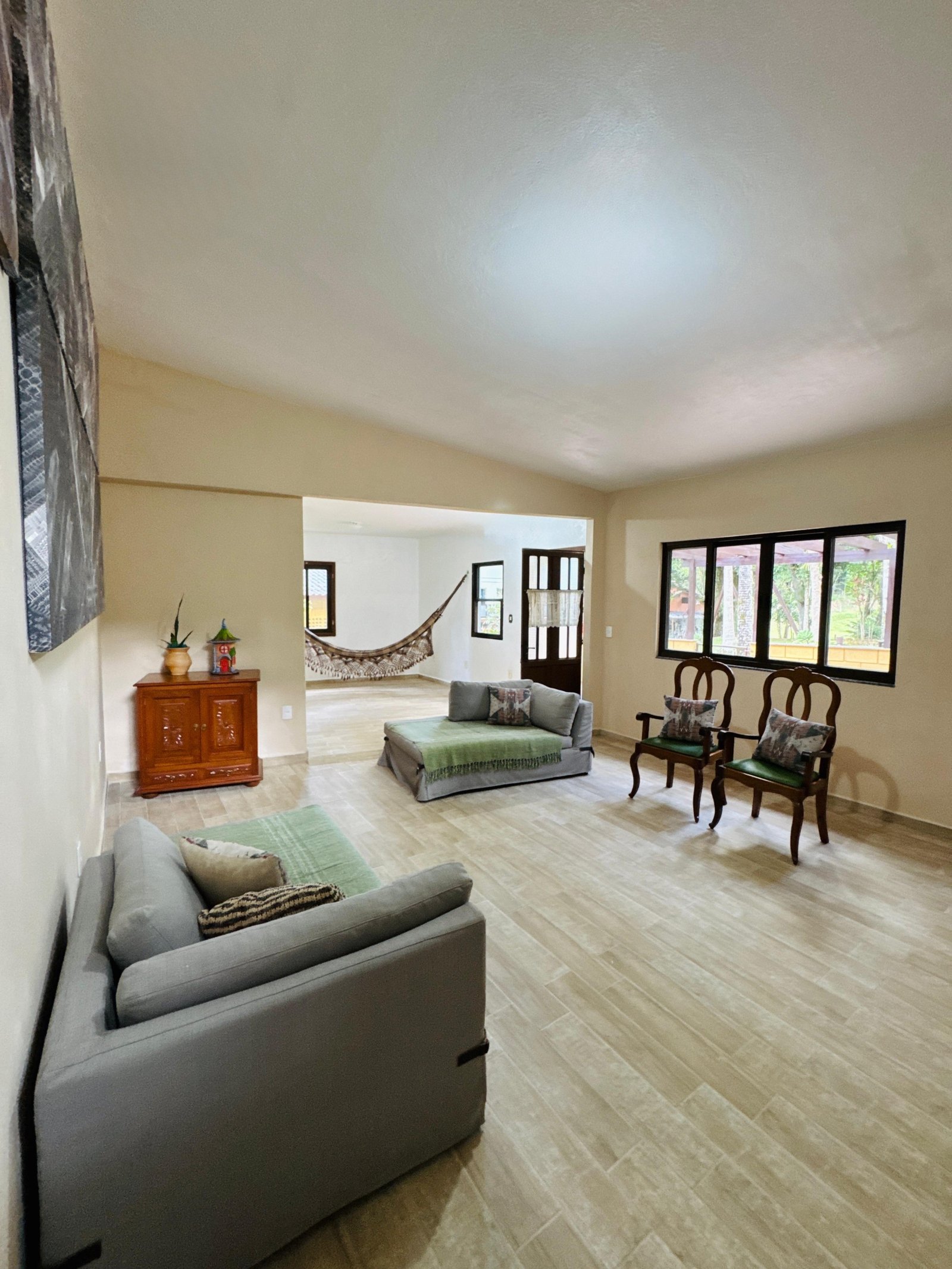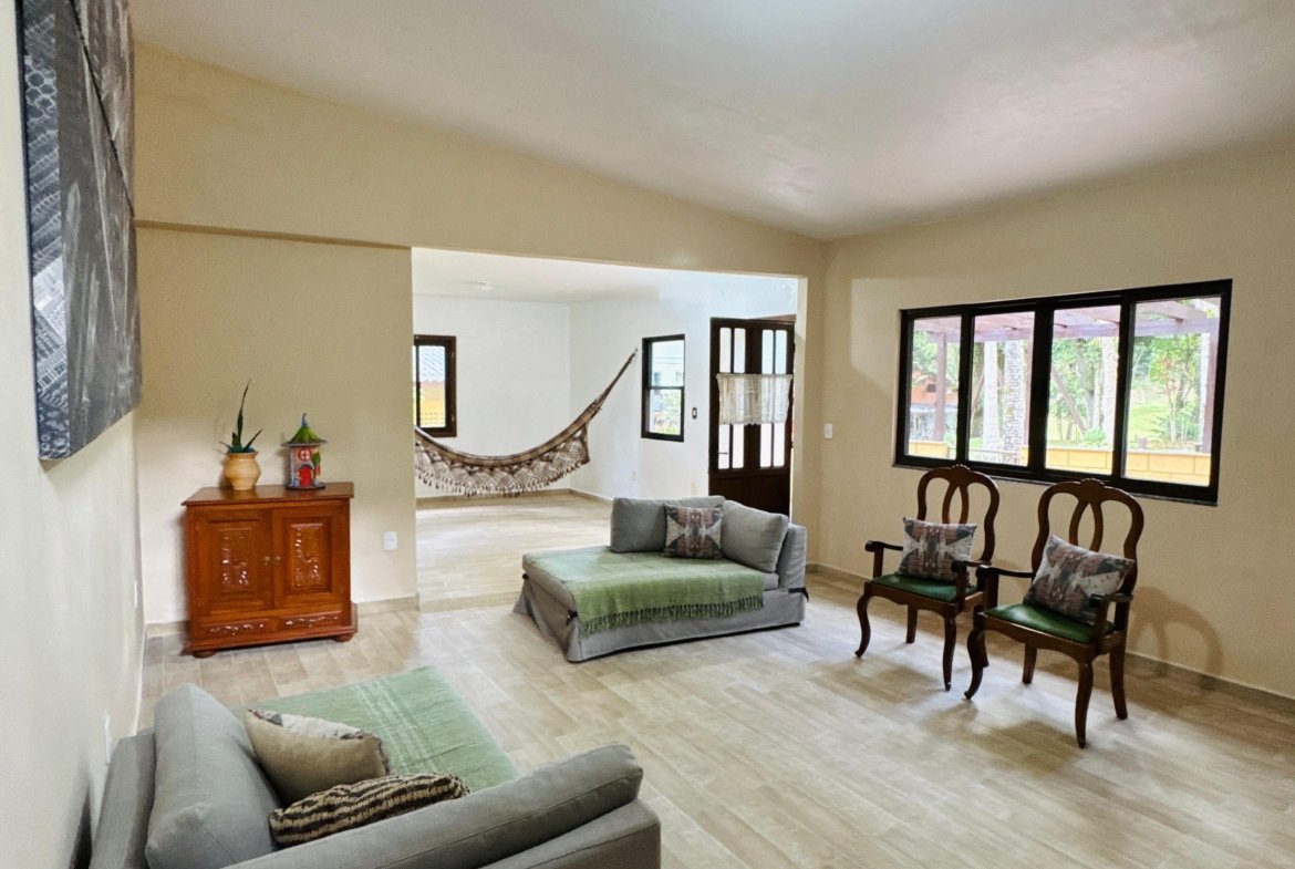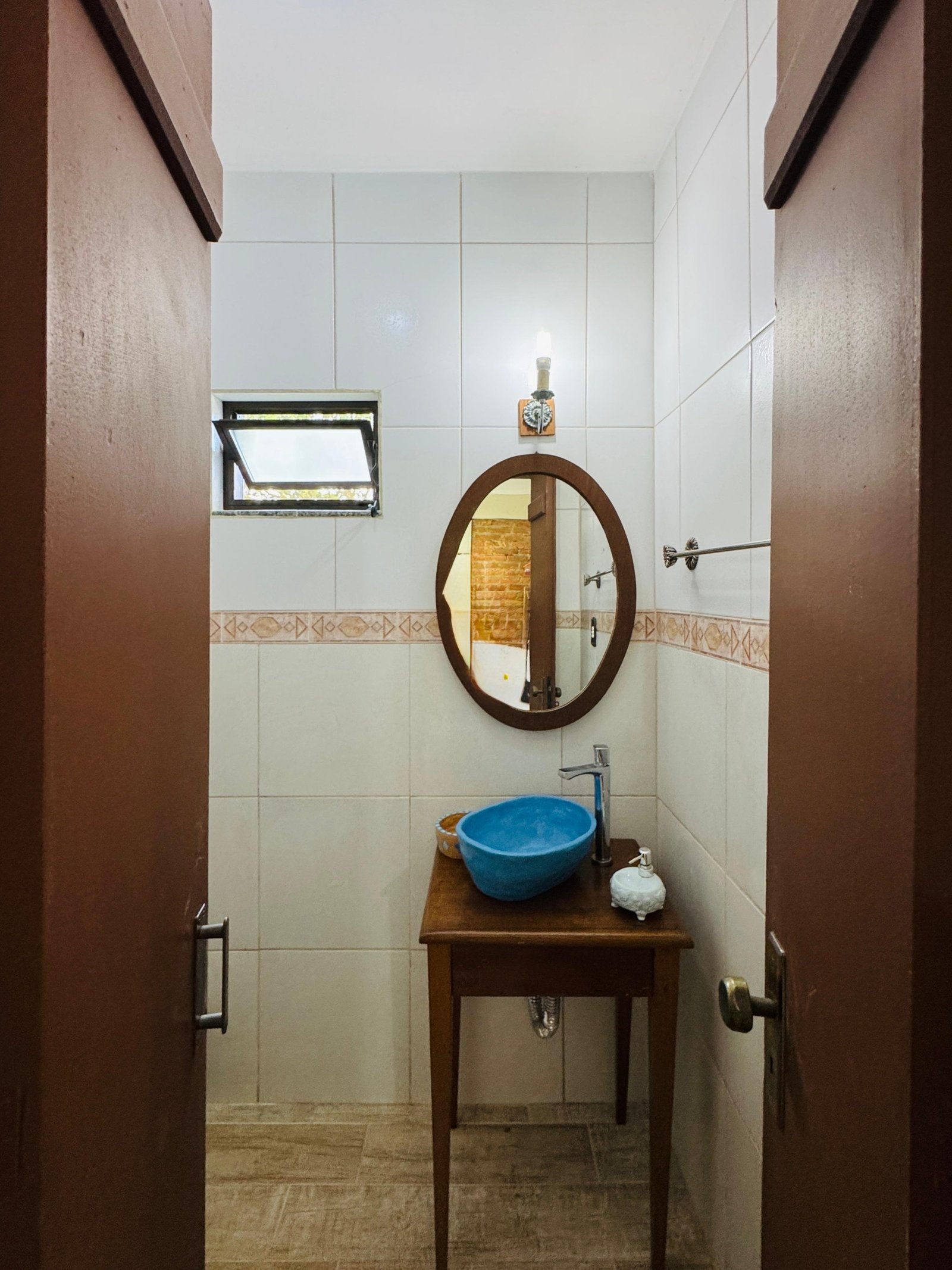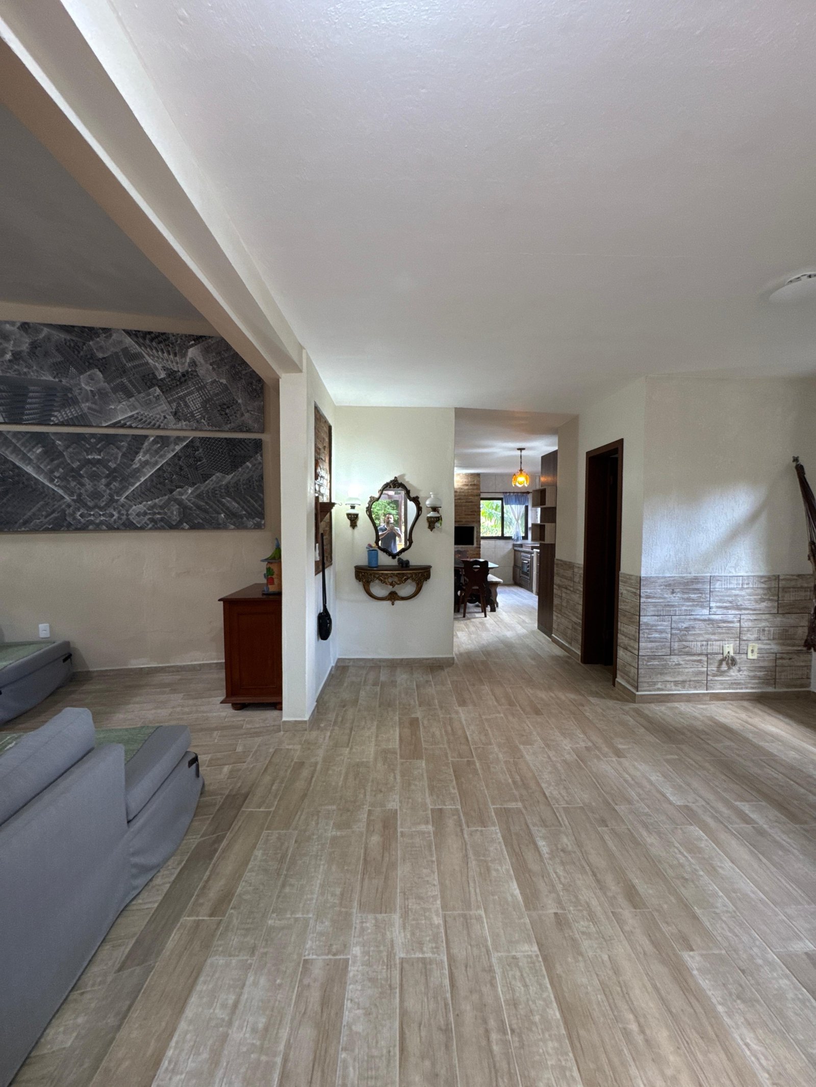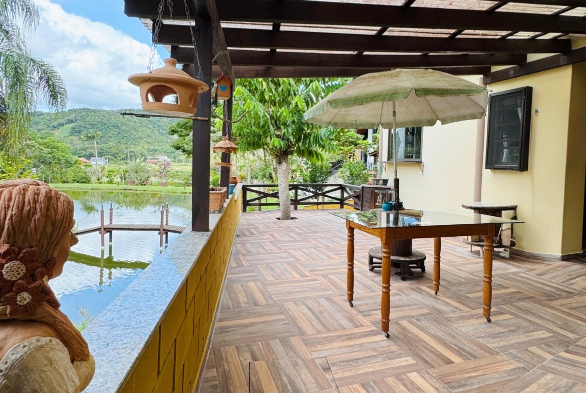 Casa com árvores frutíferas, mobiliada duas suítes (uma com closet) ar condicionado nas suítes e sala, cozinha completa com churrasqueira a carvão e fogão a lenha, lavanderia independente, escritório, lavabo, terraço com vista, varanda externa, garagem para dois carros.
