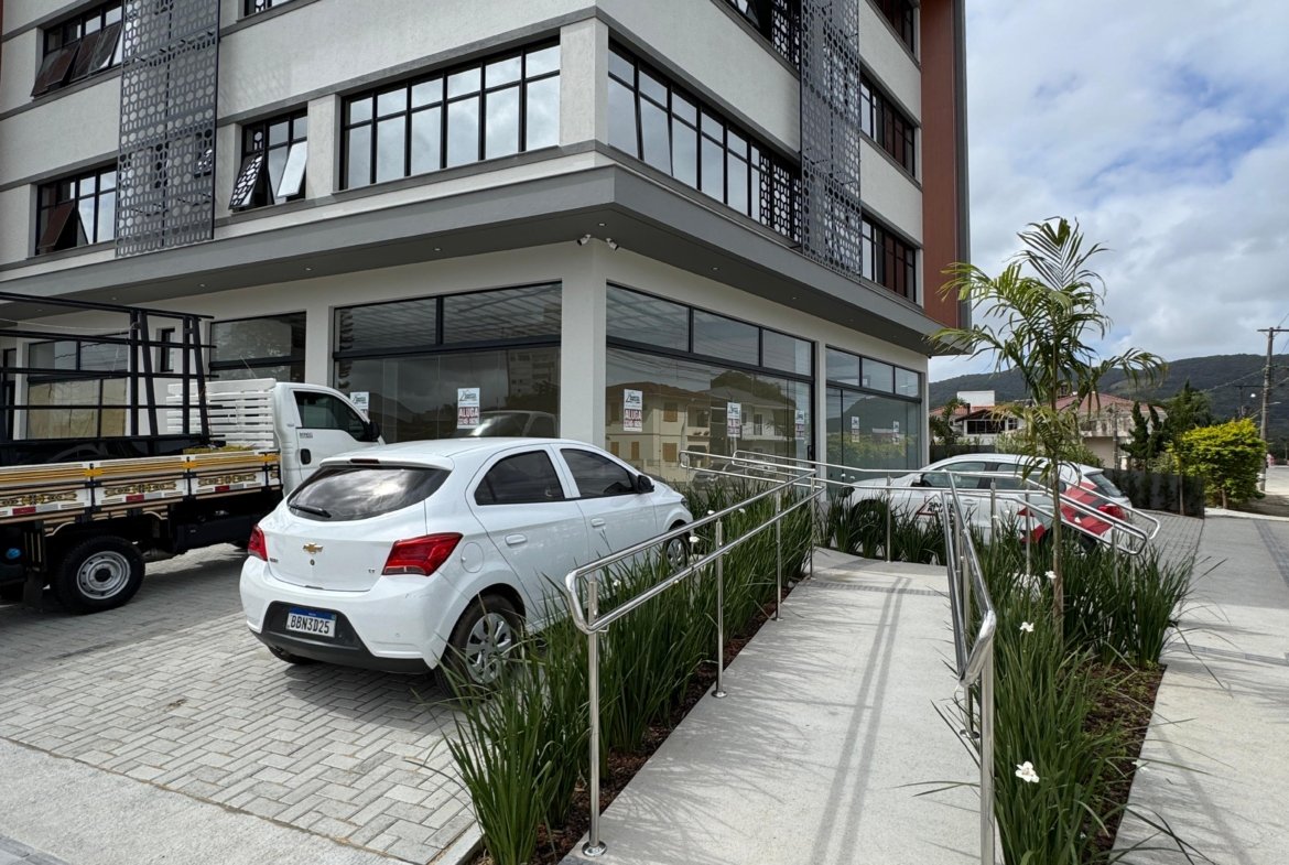 Loja comercial nova, térrea, com excelente vitrine e ponto estratégico. Conta com acabamento moderno, piso em porcelanato, banheiro, copa, acessibilidade e estacionamento rotativo, proporcionando praticidade e ótima visibilidade para o seu negócio.