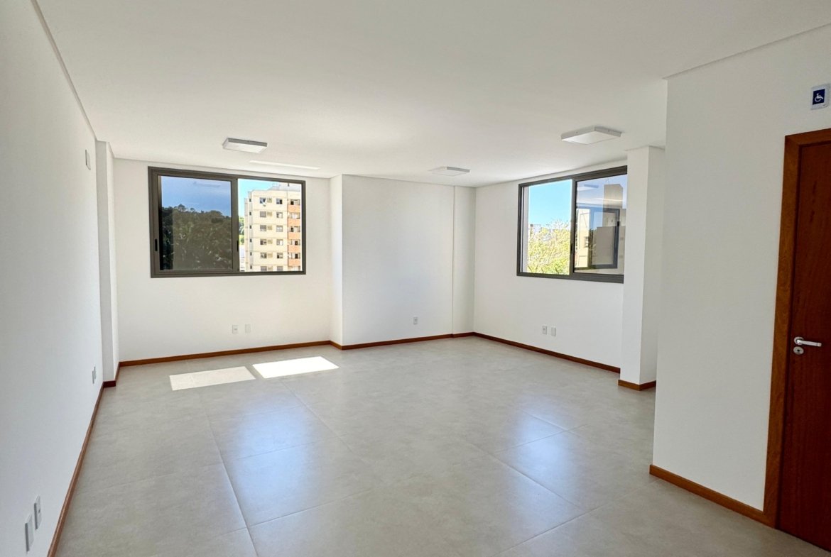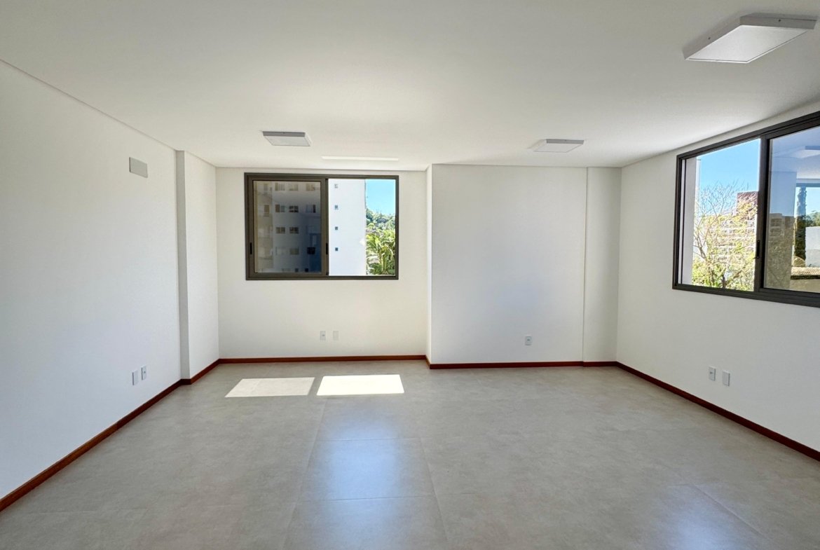 Excelente sala comercial nova, com área privativa de 44,09m², amplo espaço, banheiro, porcelanato, massa corrida, infraestrutura para instalação de ar-condicionado, posição de lateral, segundo andar.