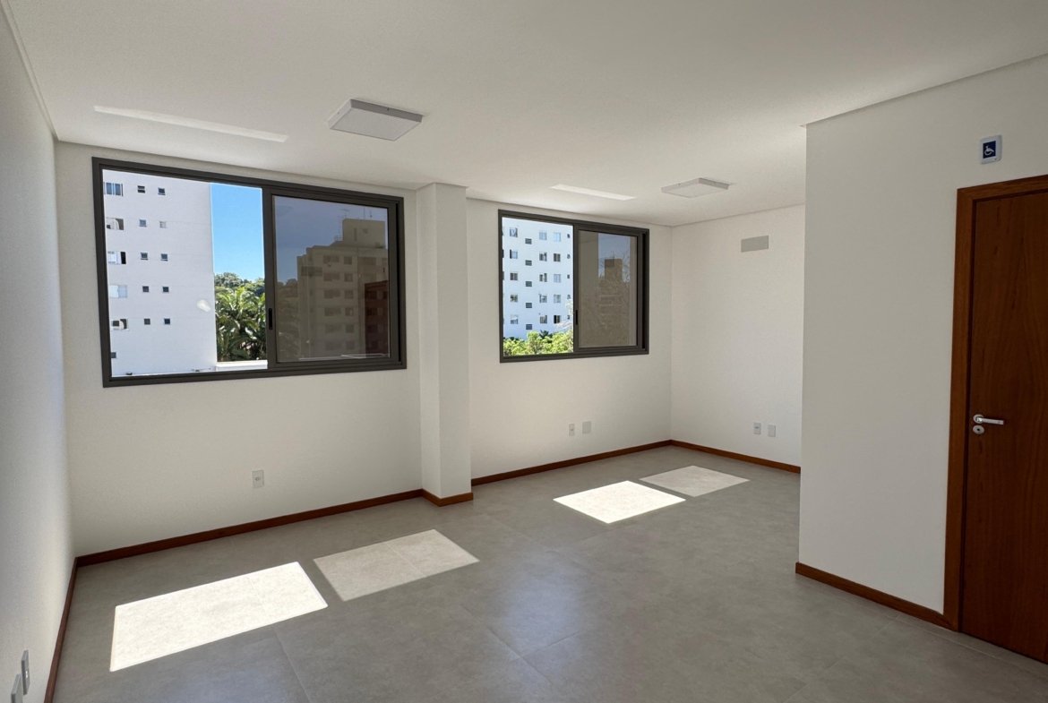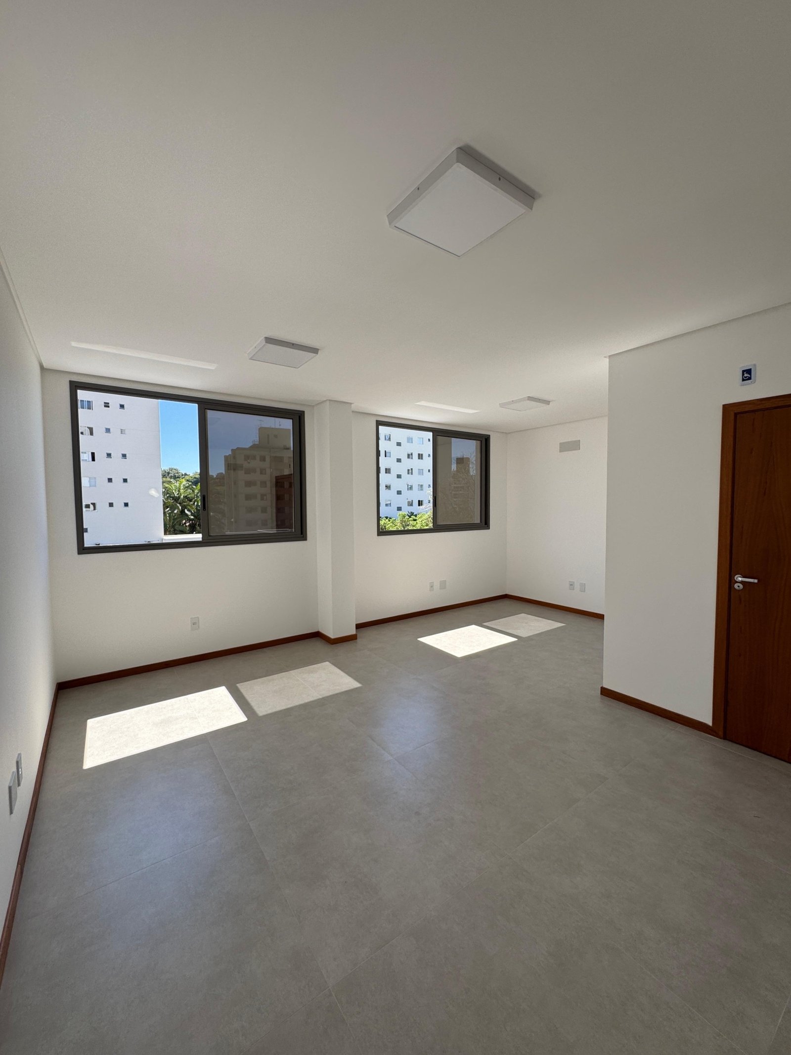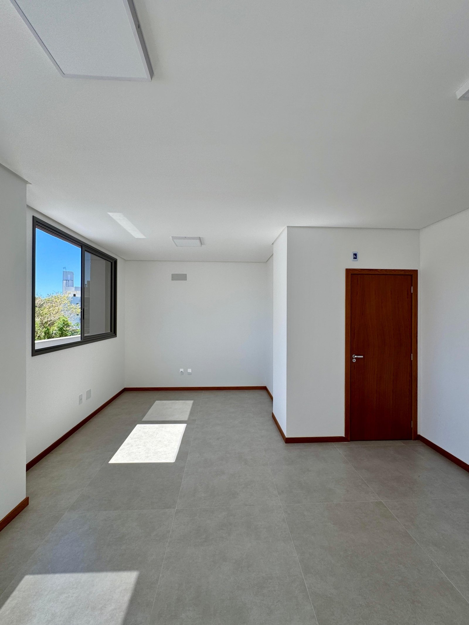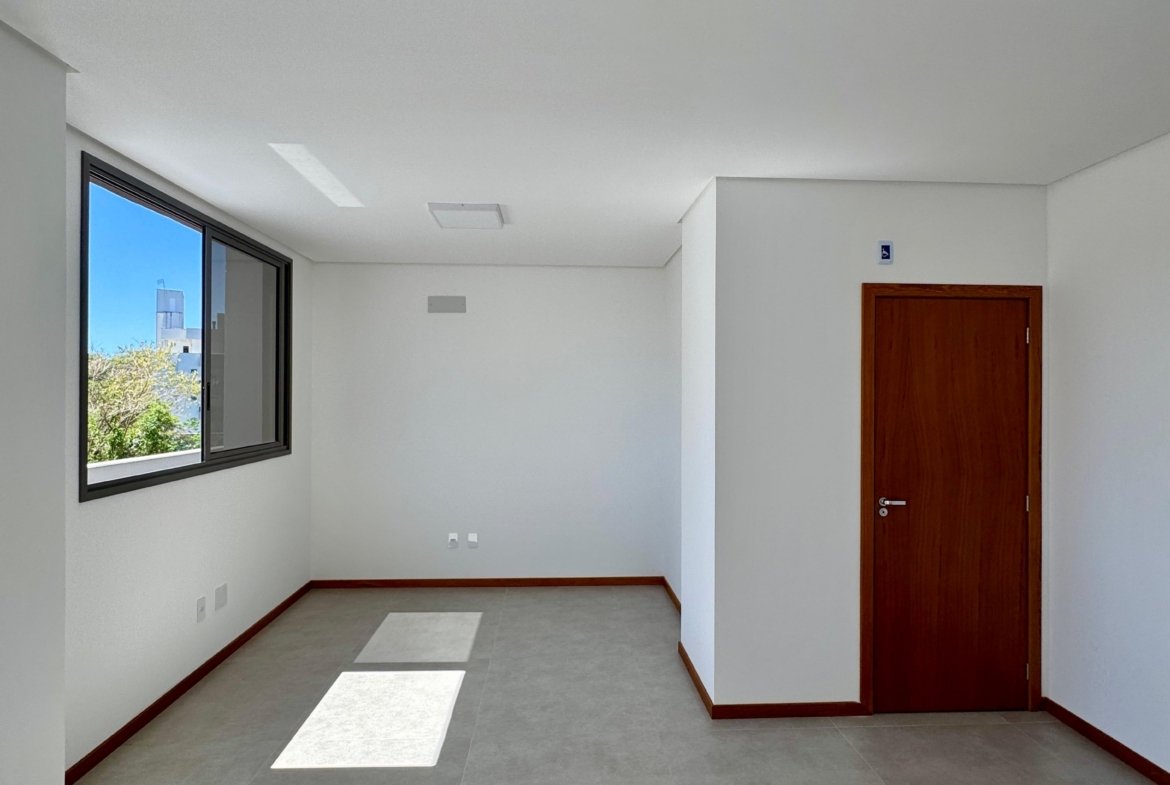 Excelente sala comercial nova, com área privativa de 34,77m², amplo espaço, banheiro, porcelanato, massa corrida, infraestrutura para instalação de ar-condicionado, posição de lateral, segundo andar.